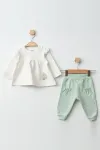 Kız Bebek Çiçek Desenli Sweatshirt Pantolon 2  li Alt Üst Bebek Takımı 3 Ay-36 Ay