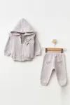 Kız Bebek Çiçek Desenli Sweatshirt Pantolon T-shirt 3 lü Alt Üst Bebek Takımı 3Ay - 36Ay