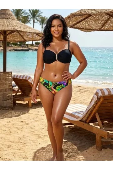Kadın Siyah Taş İşlemeli Toka Aksesuarlı Astarlı Bikini Takım HZL25S-LC208