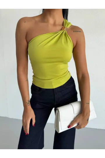 Kadın Fıstık Yeşili Tek Omuz Gold Metal Detaylı Sandy Bluz HZL26S-FRY123821