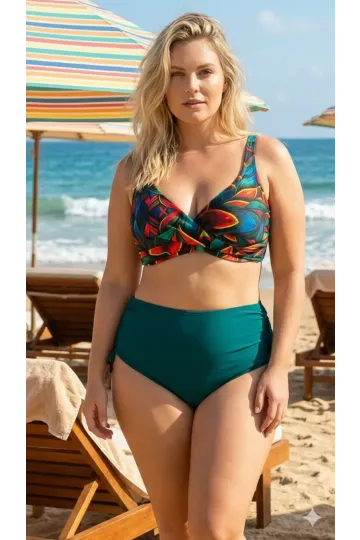 Kadın Petrol Yeşili Çiçek Desenli Astarlı Büyük Beden Bikini Takımı HZL26S-LC21202