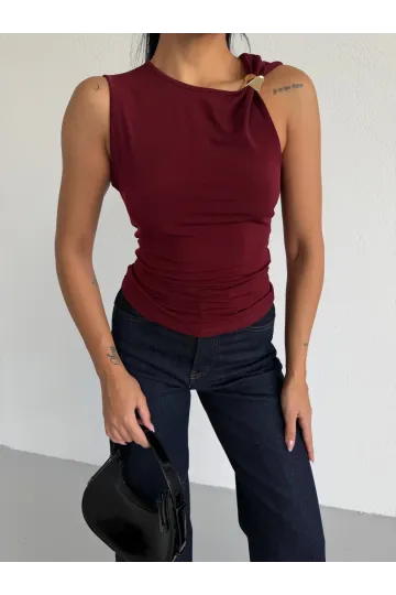 Kadın Bordo Gold Tokalı Omuz Detaylı Sandy Bluz HZL26W-FRY123761