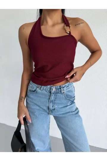 Kadın Bordo Ottoman Kumaş Halter Yaka Toka Detay Bluz HZL26W-FRY123321