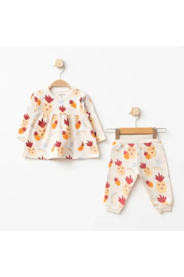 Kız Bebek Ananas Desenli % 100 Pamuk Sweatshirt Pantolon 2 li Alt Üst Bebek Takımı 3 Ay-36 Ay