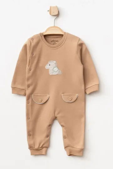Erkek Bebek Çıtçıtlı At Nakışlı Tulum 0 Ay - 6 Ay