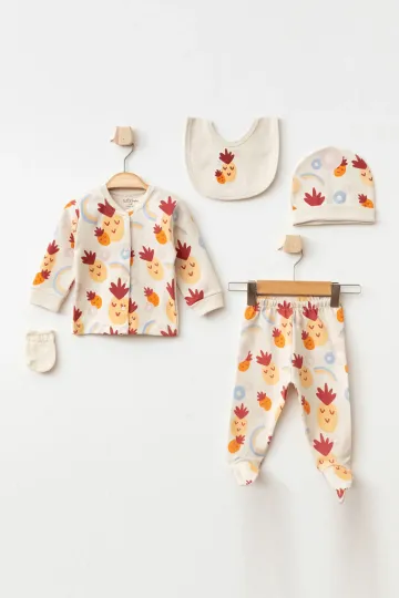 Kız Bebek Ananas Desenli 5 Li Hastane Çıkış Seti 0 Ay - 3 Ay