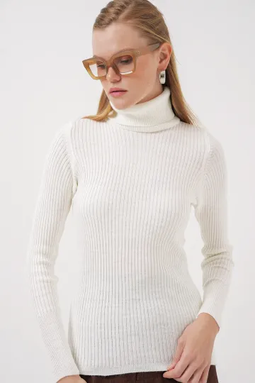 10311 Balıkçı Yaka Triko Kazak - Beyaz