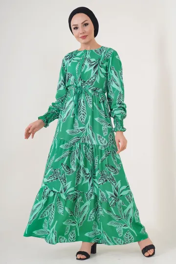 2145 Desenli Tesettür Elbise - Yeşil