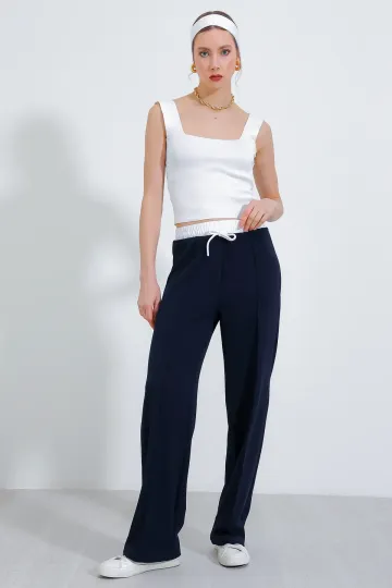 Kadın Lacivert Bol Paça Çımalı Pantolon 6662