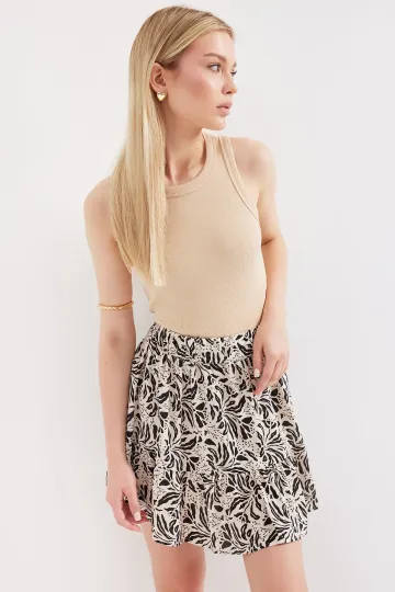 1884 Desenli Viskon Mini Etek - F. Siyah