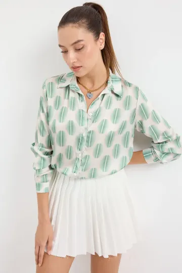 3964 Hafif Dökümlü Saten Gömlek - B. Haki