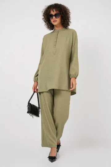 6678 Keten Tunik Pantolon İkili Takım - Çağla