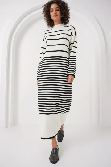 15890 Uzun Triko Elbise - B.Beyaz