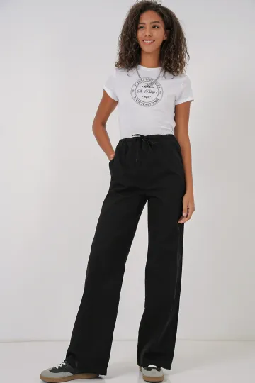 6690 Kadın Bol Paça Yüksek Bel Pantolon - Siyah