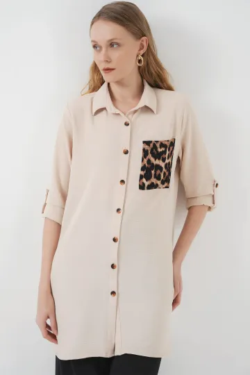 5851 Cep Detaylı Gömlek Tunik - Bej