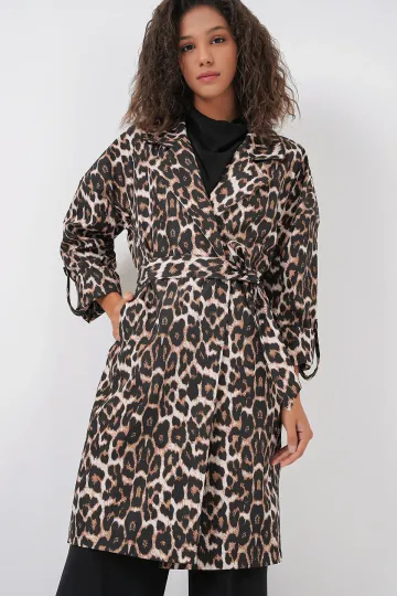 9104 Kruvaze Yaka Astarlı Trençkot - M. Kahverengi