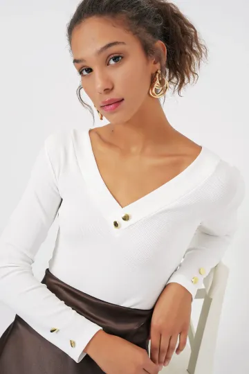 923 Uzun Kollu Body - Beyaz