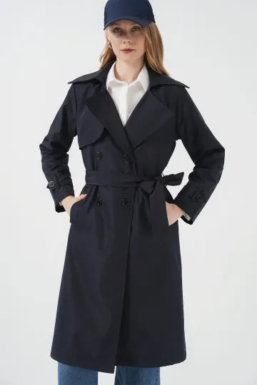 5918 Kruvaze Yaka Trençkot - Lacivert
