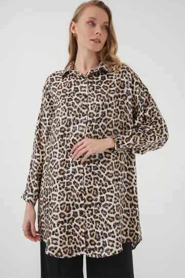5944 Desenli Uzun Gömlek Tunik - Bej