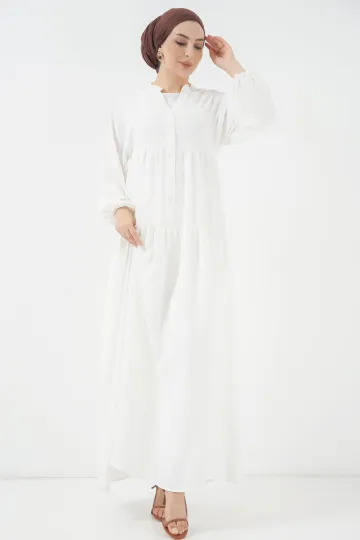 2527 Kadın Uzun Tesettür Elbise - Beyaz