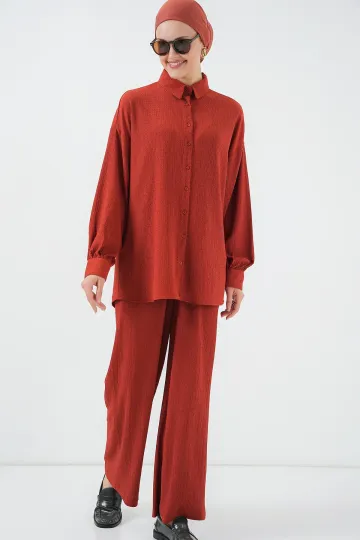 Kadın Örme Tesettür Alt Üst Takım 6711 - Kiremit