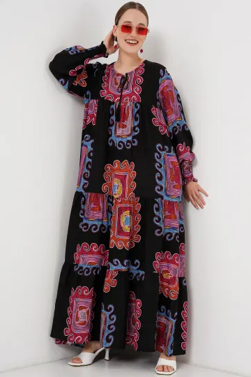 1947 Desenli Uzun Elbise - M. Kırmızı