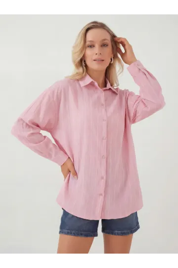 Kadın Çizgili Oversize Gömlek 20293 - Pembe