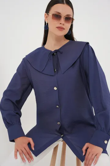 Kadın Bebe Yaka Uzun Tunik 5967 - İndigo