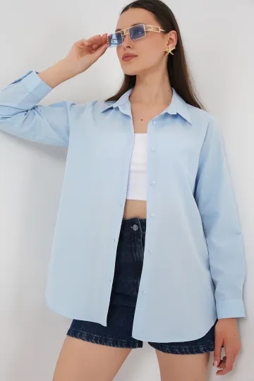 Kadın Uzun Kol Basic Gömlek 20279 - Mavi