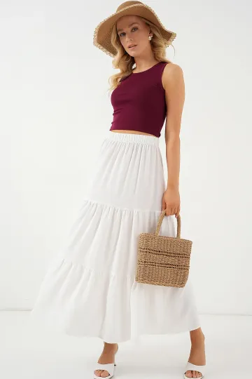 Kadın Ayrobin Uzun Etek 8048 - Beyaz