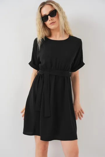 Kadın Kısa Kol Mini Ayrobin Elbise 2572 - Siyah