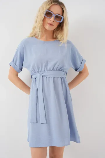 Kadın Kısa Kol Mini Ayrobin Elbise 2572 - Mavi