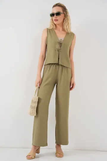 Kadın Keten Görünümlü Sıfır Kol İkili Takım 6746 - Çağla