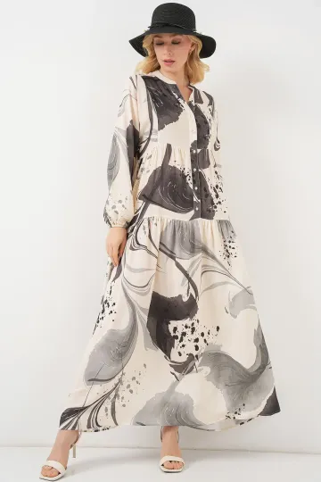 Kadın Desenli Uzun Tesettür Elbise 2585 - Siyah