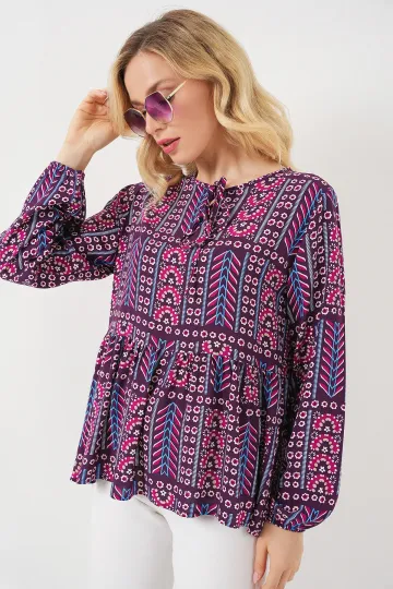 Kadın Desenli Uzun Kol Bluz 970 - Bordo