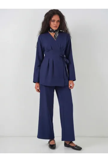 Kadın Kimono Pantolon Kumaş Takım 30054 - Lacivert