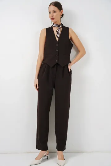 Kadın Yelek Pantolon İkili Takım 30091 - Kahverengi