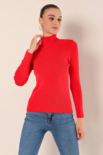 15825 Boğazlı Triko Kazak - Kırmızı
