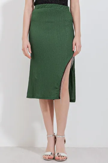 1890 Zincir Detaylı Etek - Zümrüt Yeşili