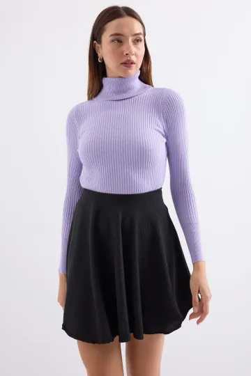 10311 Balıkçı Yaka Triko Kazak - Lila
