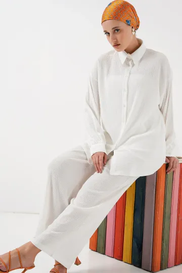 Kadın Örme Tesettür Alt Üst Takım 6711 - Beyaz