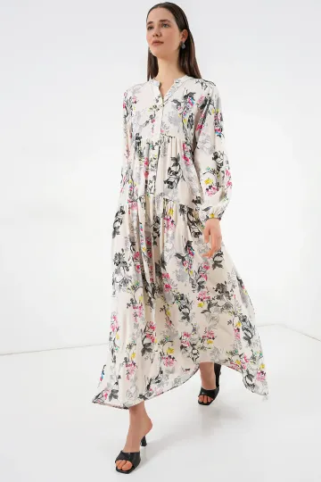 Kadın Desenli Uzun Tesettür Elbise 2585 - F.Gri