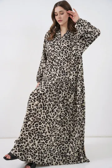 Kadın Bej Siyah Viskon Tesettür Elbise 2423