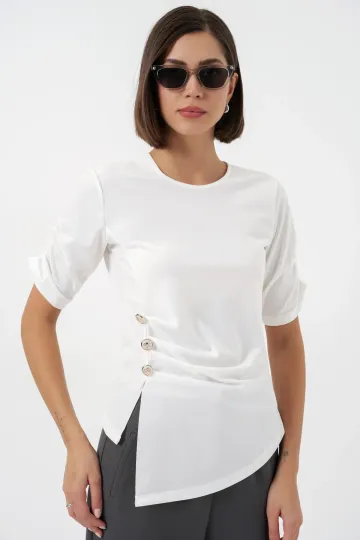 Kadın Düğme Detaylı Sandy Bluz 992 - Beyaz