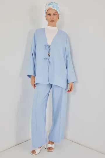 Kadın Keten Kimono İkili Takım 6727 - Mavi