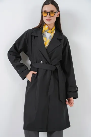 Kadın Kruvaze Yaka Trençkot 5987 - Siyah