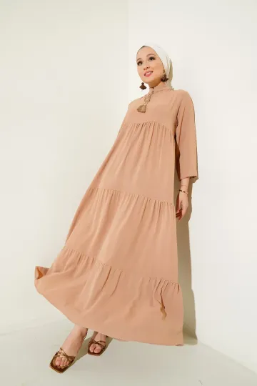 1627 Yaka Bağcıklı Tesettür Elbise - D.Vizon