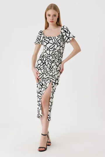 2396 Yırtmaçlı Yazlık Örme Elbise - D. Siyah