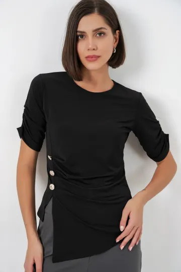 Kadın Düğme Detaylı Sandy Bluz 992 - Siyah