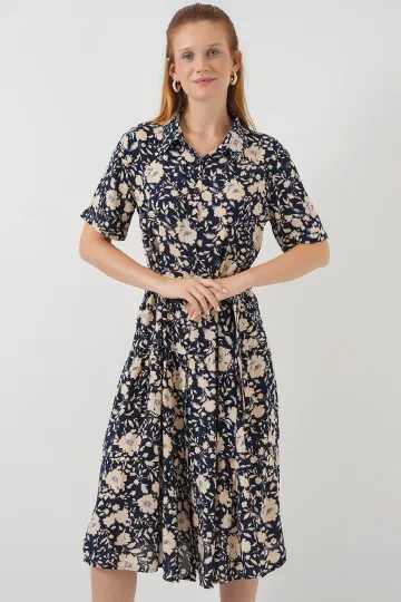Kadın Kısa Kol Desenli Elbise 2560 - Lacivert
